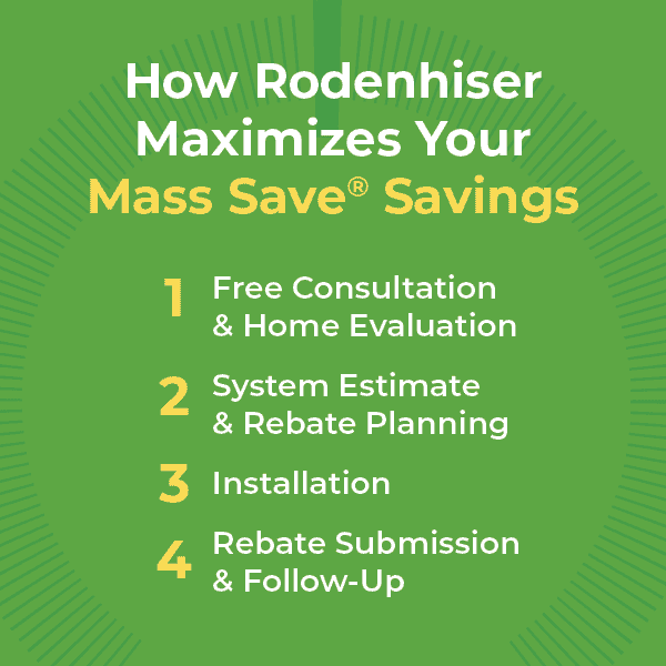 At Rodenhiser, we don't just quote a system — we calculate your maximum eligible rebate before installation. As a Mass Save Heat Pump Installer Network contractor, we: